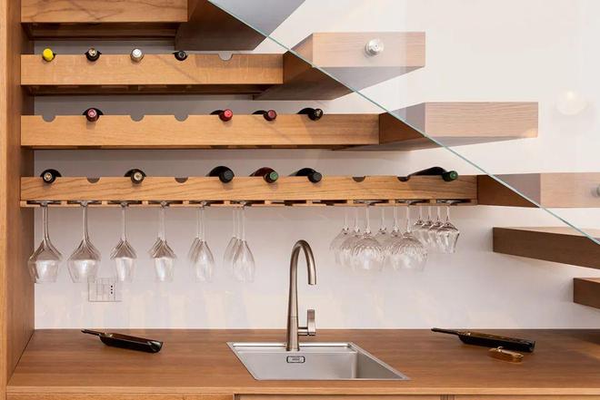 装修一套总面积约150平方米的复式公寓。这对年轻的客户要求我们创建一个项目,允许两个楼层的日常和功能使用,而这些楼层一开始并没有从内部连接起来。创建一个内部楼梯的建议,可以直接连接最初仅通过现有公寓楼梯连接的两个楼层,立即受到了客户的青睐。内部楼梯已成为真正的家具主题。那不勒斯建筑和设计工作室 Manuarino 选择创建一个带有悬臂木台阶的楼梯,并将其集成到底层酒吧和底层浴室空间中。